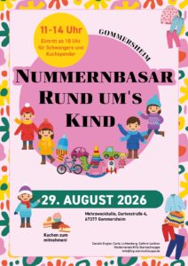 - Vom Verkaufserlös gehen 15% an den Jugendpflegeförderverein Gommersheim e.V. Bei freiwilligen Basar-Helfern sind es 10%.